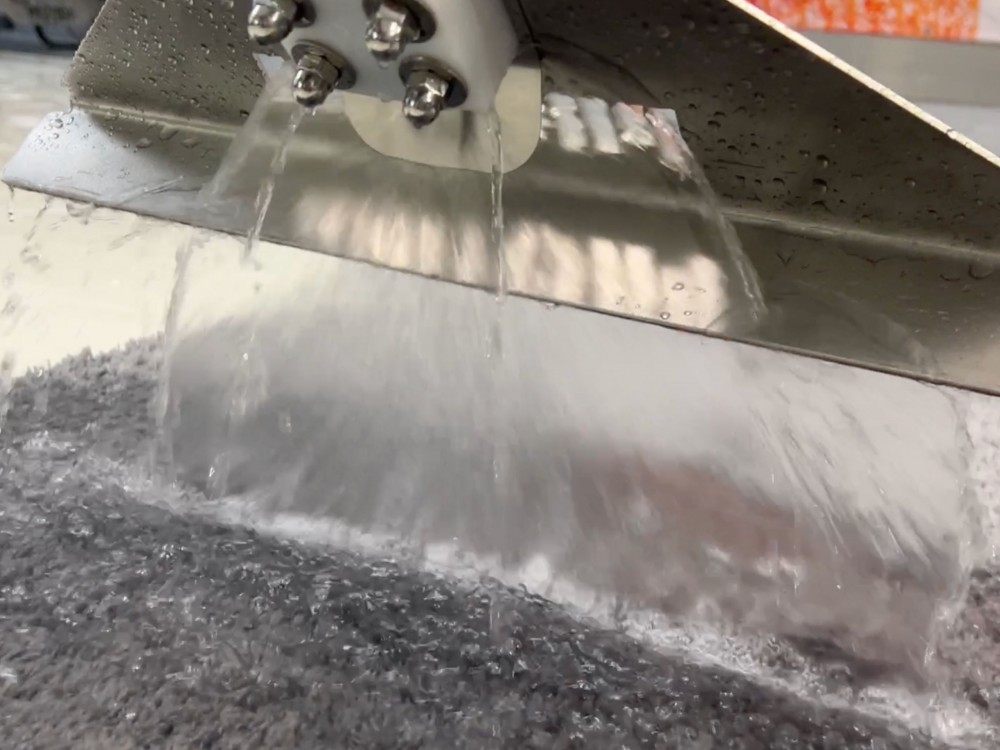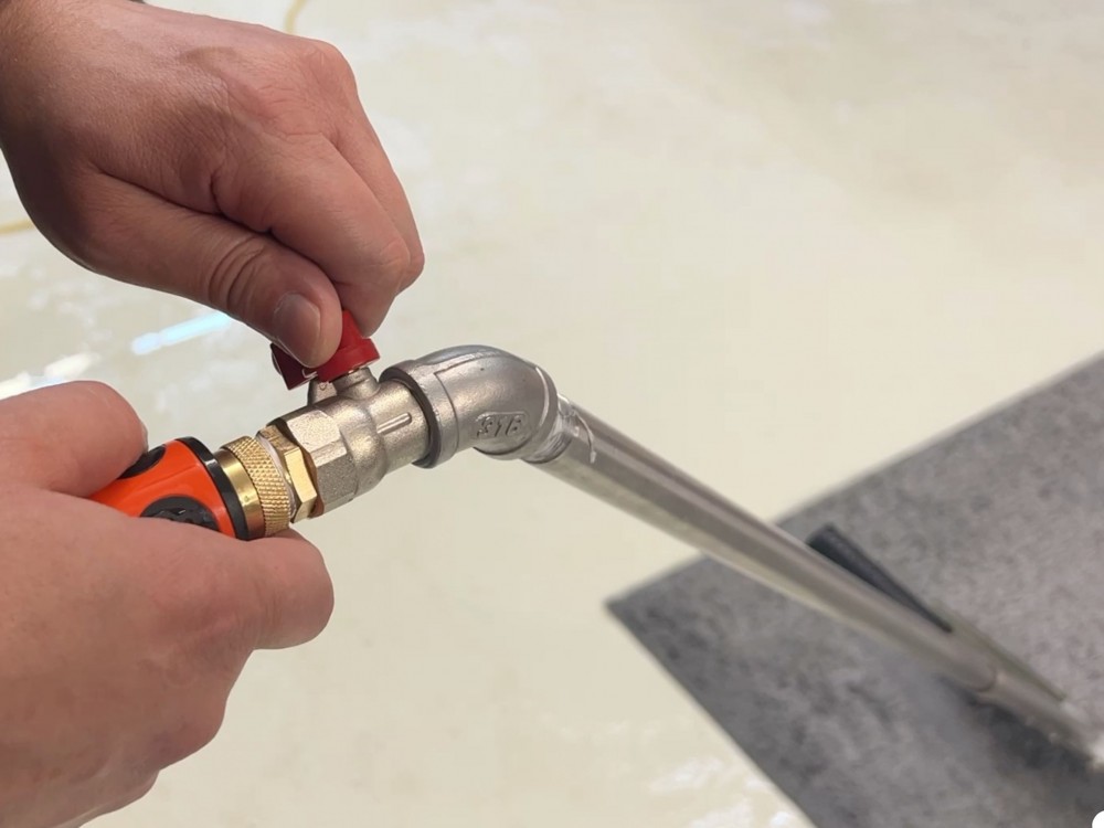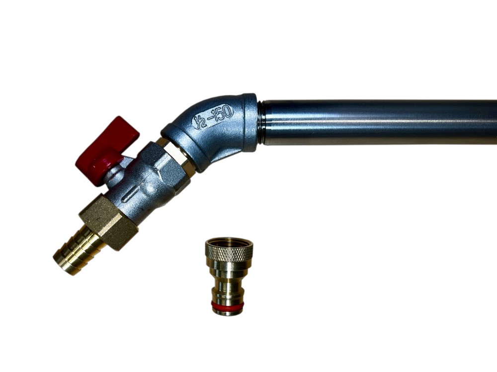 Szerszy zbierak zdecydowanie przyśpiesza pracę, jednak jego największym atutem jest możliwość podłączenia węża z wodą. Dzięki temu można jednoczesne płukać i wyciskać zabrudzenia z dywanu, co również oszczędza sporo czasu. W górnej części zbierak posiada zawór kulowy którym umożliwia zamknięcie przepływu wody. Zbierak został wyposażony w specjalną blaszkę rozbryzgującą wodę, dzięki czemu będzie również bardzo przydatny podczas wstępnego namaczania dywanów. Uchwyt zbierak można dostosować do osoby lewo lub praworęcznej, a dzięki temu, że składa się z trzech elementów tj. korpusu oraz dwóch gwintowanych rurek zdecydowanie zmniejszyliśmy gabaryty do wysyłki. Każdy zbierak jest zapakowany w karton wraz z kompletem akcesoriów potrzebnych do montażu (zawór kulowy, kolanko, mufa, dwa rodzaje przyłącza, taśma teflonowa, klucz i imbus do skręcenia oraz dodatkowa rączka gumowa).