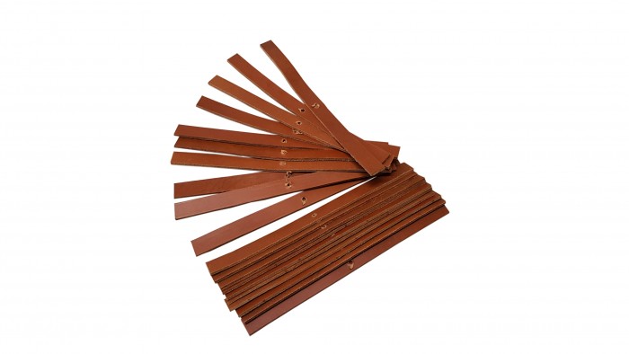 Komplet 20 szt. pasków trzepiących wykonanych ze specjalnie garbowanej skóry o grubości 4 mm. Paski należy regularnie wymieniać co 3-6 miesięcy tak aby nie obniżać skuteczności trzepania dywanów.