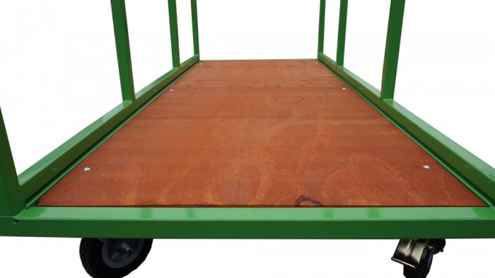 - платформа изготовлена из водостойкой фанеры - четыре пневматические колеса - два поворотных колеса с тормозами для легкого перемещения - съемные боковые поручни - тележка полностью разборная для облегчения транспортировки и монтажа