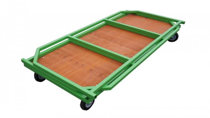 Тележка используется для транспортировки грязных или чистых ковров между помещениями прачечной. Тележка будет также очень полезной при загрузке или разгрузке ковров с или на транспортного средства. Ее можно использовать как передвижной склад для ковров. После демонтажа боковых поручней с помощью тележки можно транспортировать товары любых габаритов.